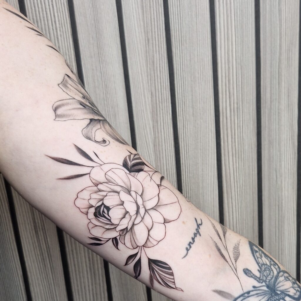 Lineart – weil ich mich auf feine Linien spezialisiert habe, die sich in vielen Stilen wiederfinden, sei es bei Fineline, Sketch, Black and Grey, oder auch in meinen Farbtattoos. Florale Motive oder solche, die aus Filmen und Serien herrühren, als auch im Comic, Anime/Manga – Stil, steche ich besonders gern. Meine Kunst ist sehr vielseitig und abwechslungsreich, wie du in meiner Galerie schon bemerkt haben wirst. Ich lege viel Wert auf Präzision und bin detailverliebt, aber fixiere mich bewusst nicht auf eine Stilrichtung. Gerne nehme ich mir die Zeit, für ein persönliches Beratungsgespräch, wo ich auf deine Motivwünsche eingehe, um eigens etwas für dich zu kreieren. Mir liegt es sehr am Herzen, dein Tattoo einzigartig für dich zu gestalten, um ein bleibendes Unikat als Kunstwerk auf deiner Haut zu erschaffen.